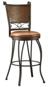 The intricate details on this bar stool make it a unique and eye-catching piece. Finished in bronze and accented with muted copper, the curved legs and stamped back provide interest to a somewhat simple design.Read More