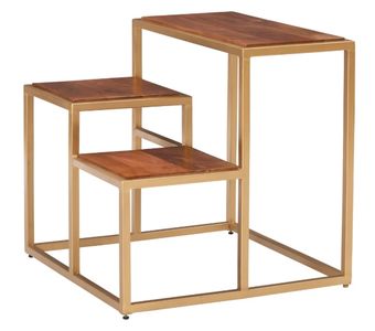 Add a new dimension to your living room, bedroom, or parlor with this eccentric accent table. The sturdy iron frame supports three wooden platforms, perfect for displaying plants and decorations or holding drinks at a dinner party. The minimal silhouette helps keep your space open and airy, allowing natural light to flow through.Read More