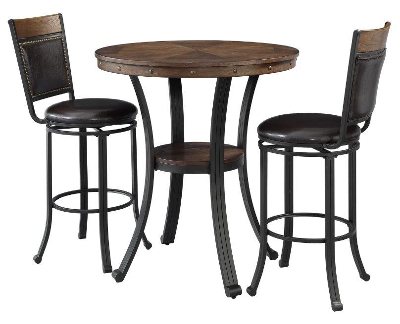 Complete 3-Piece Set: Includes one Faux Leatherb-height table and two barstools, making it an instant upgrade for compact dining or entertaining spaces.
