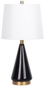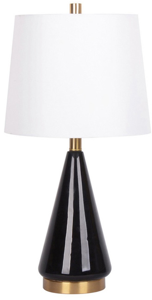 Less is more—and this table lamp is the ideal example. Featuring a simple yet chic contoured ceramic body with a goldtone metal base, it's perfect for modern and contemporary spaces. A crisp white fabric shade keeps the lamp light and feeling fresh.Read More