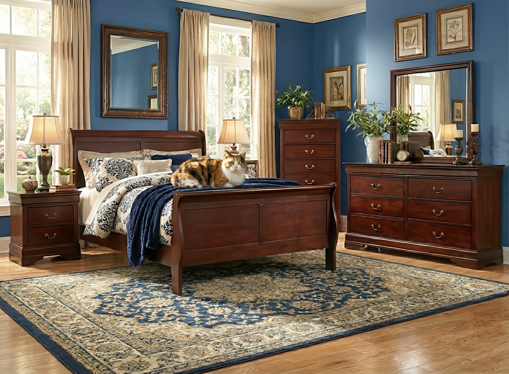This 5-piece bedroom set is the epitome of traditional decor. Louis Philippe-style moulding dates back to the mid-19th century when furnishings were lavish yet somewhat simple. Rich, complex finish is sure to grace your space with warmth and elegance. Affordable elegance, brought to you by LFD Homefurnishings of South Texas, proudly serving Brownsville, McAllen, Rio Grande City, Laredo and Eagle Pass.Read More