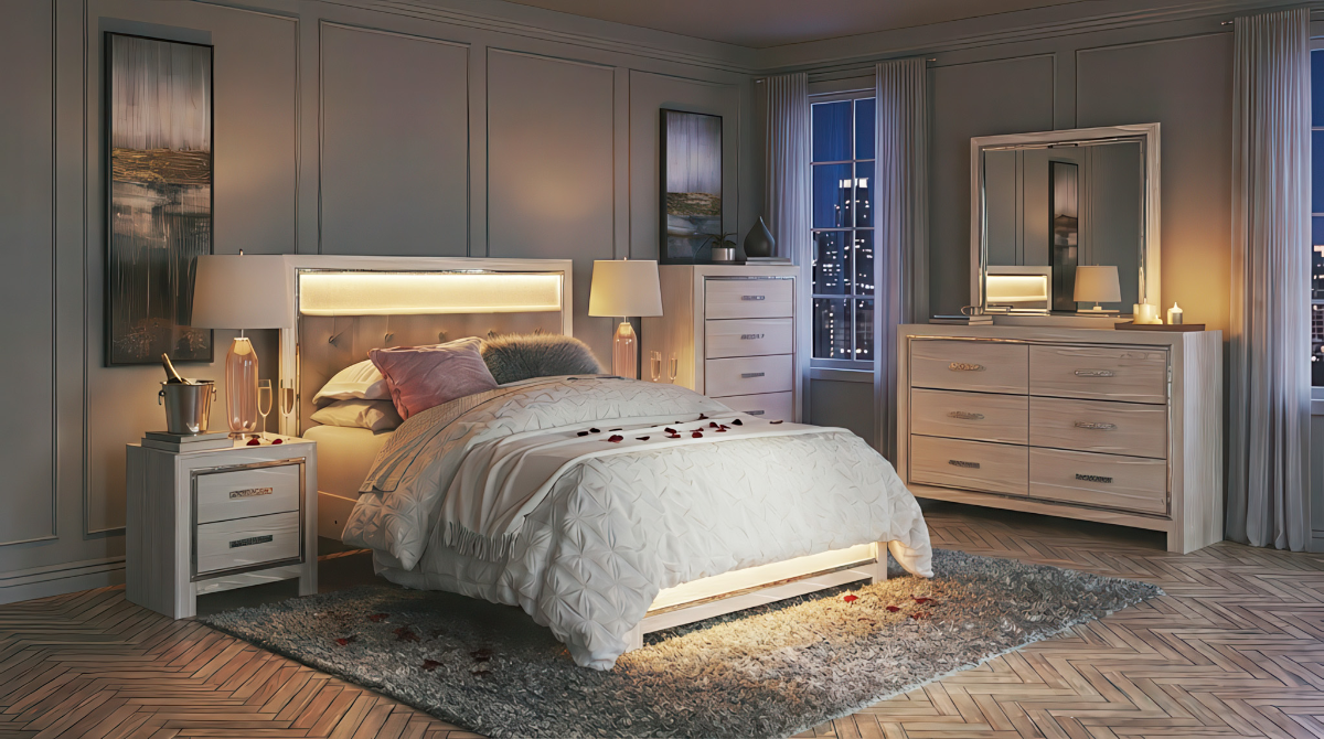 Transform your bedroom into a romantic retreat with the Altyra Bedroom Group, a showstopper now available at LFD Homefurnishings. Designed for those who want to bring a touch of modern luxury into their South Texas home, this set is as functional as it is beautiful. Set the Mood with LED Technology. The crown jewel of the Altyra is its illuminated headboard. Featuring built-in LED stripping, this headboard casts a soft, ambient glow perfect for winding down after a long day or setting a romantic atmosphere without the need for harsh overhead lighting.