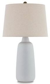 This table lamp sends out a lovely glow, enhancing minimalist interior spaces. The conical white ceramic base with subtle texture and drum hardback fabric shade create a modern aesthetic. Place these accent lamps on a console table for a serene hint of color and understated chic sophistication.Read More