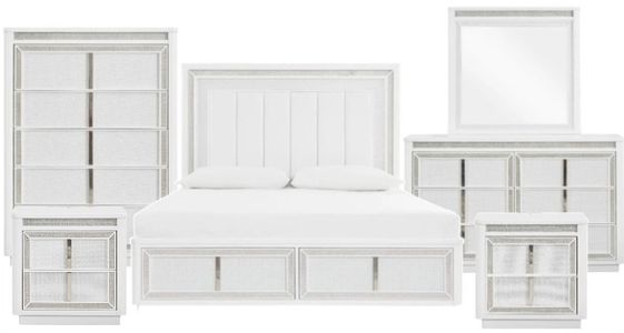 *Bed, 2-nightstand, chest, dresser and mirror only, any other products that may be displayed are sold separately. Images may not represent the actual size and color in images may differ in person. See store for the actual color or finish.