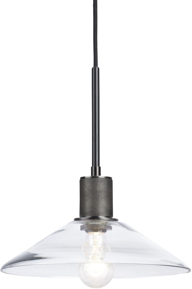 Clear glass and antique black finished brass metal pendant light.