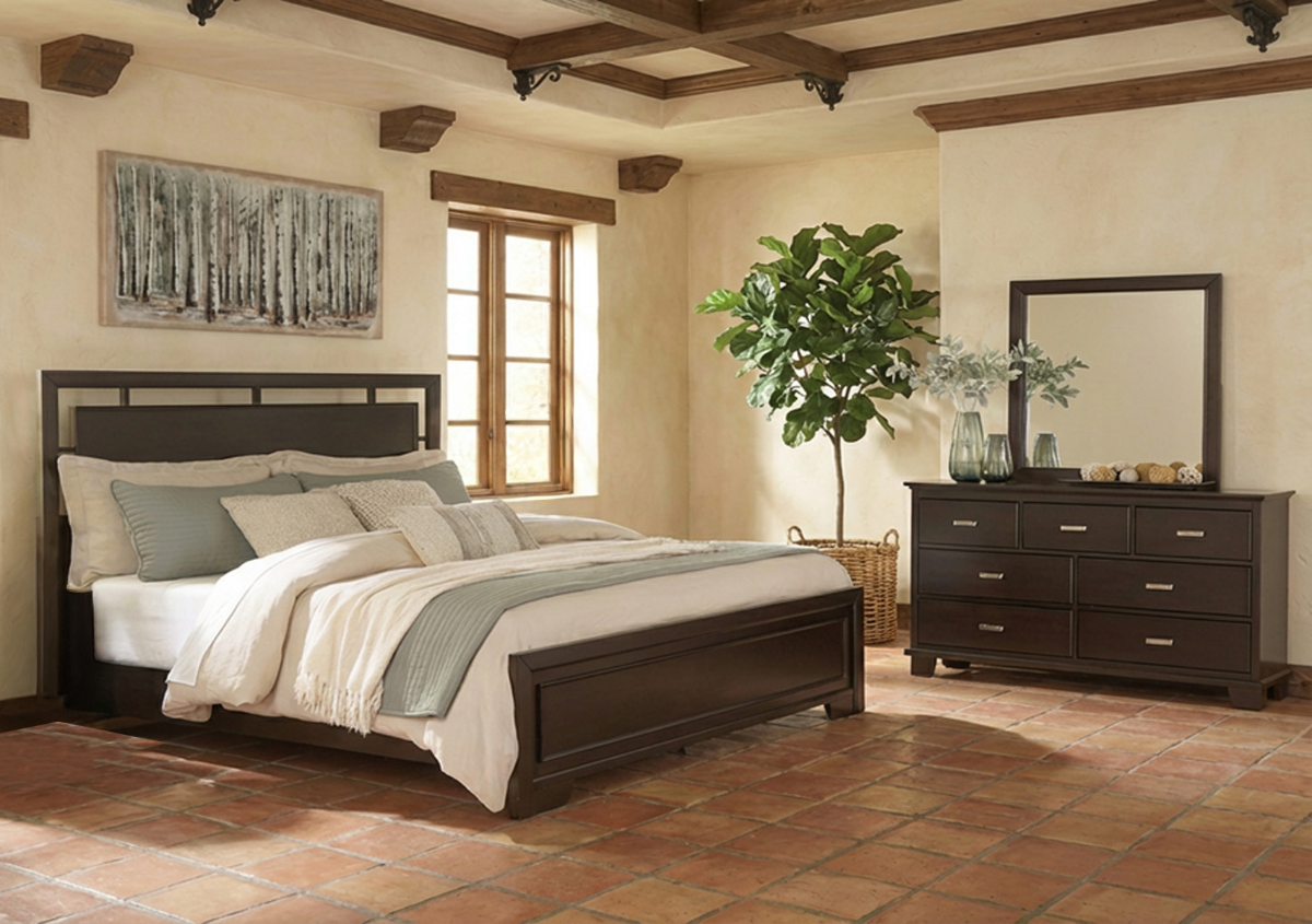 Feast your eyes on this richly versatile bedroom package. Its traditional-inspired dark brown finish effortlessly blends with contemporary details to create a stunning look that's not too stuffy or too trendy. Such a refined way to wake up your bedroom style.Read More