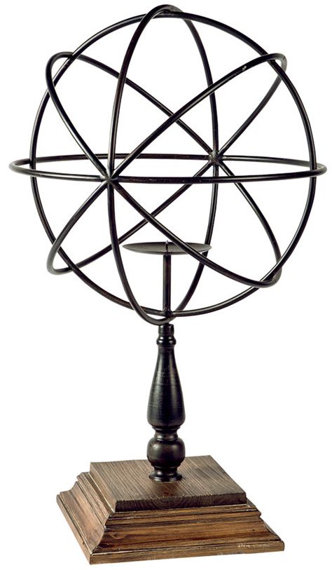 Celestial-inspired metal and wood candle holder is truly out of this world. Mix of bronze-tone metal and rustic wood keep the look beautifully down to earth.