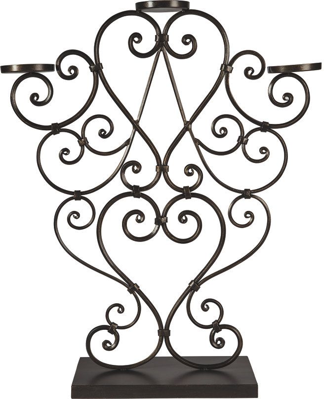 Your mantles, tabletops, and shelves have never looked better than with the traditional scrolling pattern of the Didier collection from Signature Design by Ashley®. Complement your cozy aesthetic with a kiss of gold-tone finish that enhances the sleek feel of this collection.