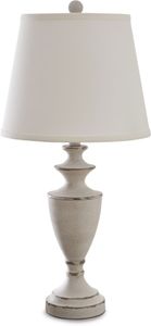 Signature Design by Ashley® Dorcher Table Lamp features antique gray finished metal table lamp, empire hardback shade, on/off switch, (1) E26 socket, type A bulb - 60 watts max or 13 watts max CLF.Read More