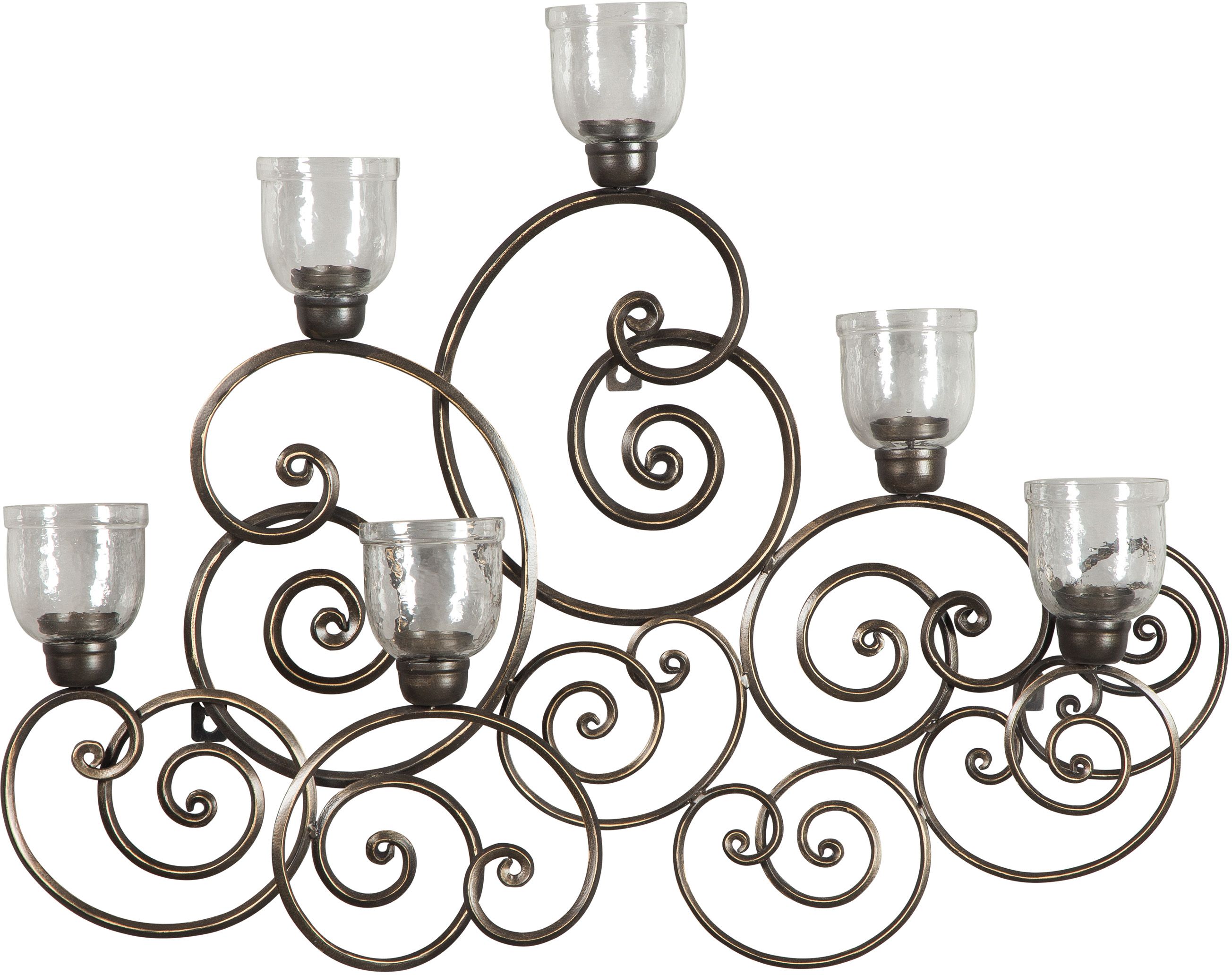 Elaborate scrolls and a burnished metallic finish give this wall sconce such an elegant essence. You’ll love the way that flickering candlelight creates such a warm ambience in your space.
