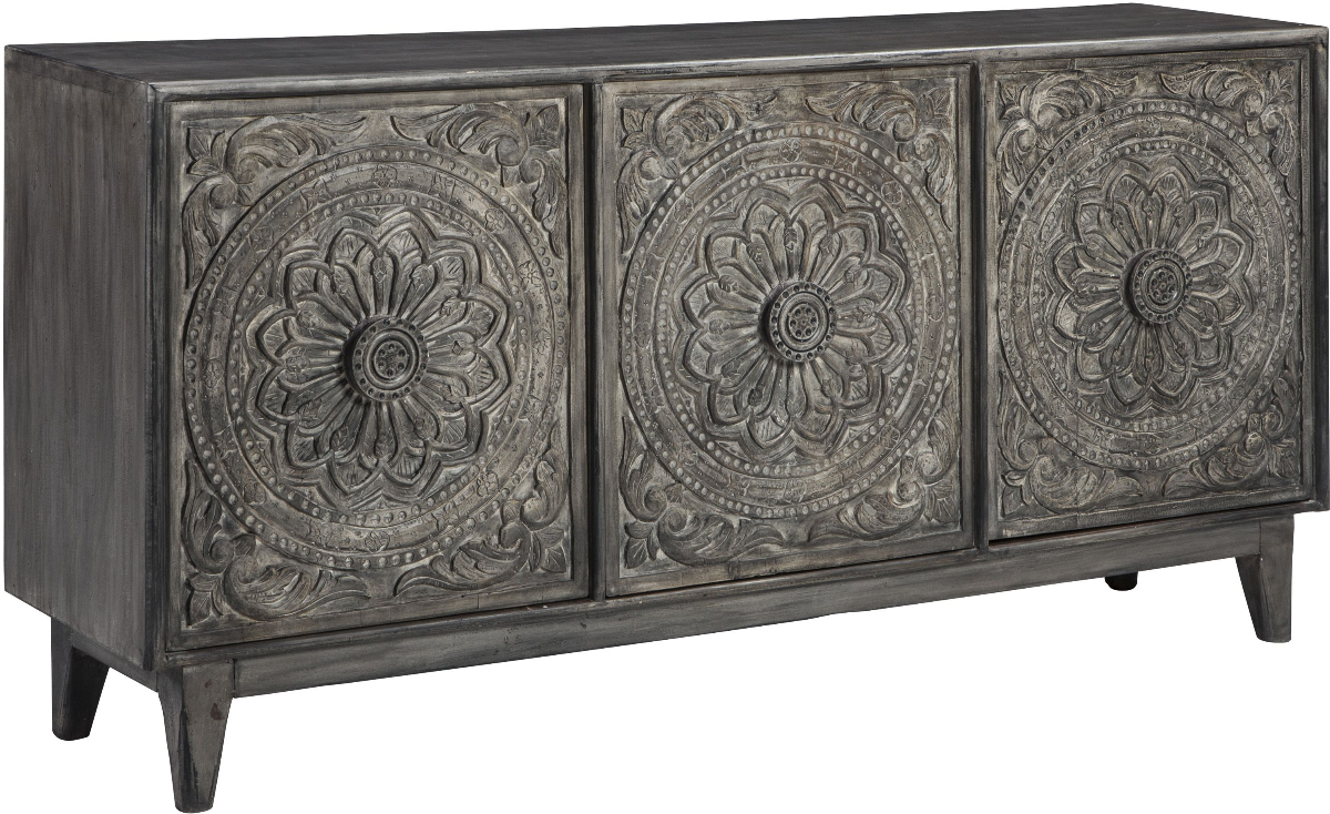 Have a taste for something exotic? Feast your eyes on this exquisitely styled console. Whether tantalizing in the dining room, gracing an entryway or serving as an eclectic TV stand—what a masterpiece of an accent piece. Fancifully floral-carved doors are a striking contrast to the console’s ultra-linear profile.Read More