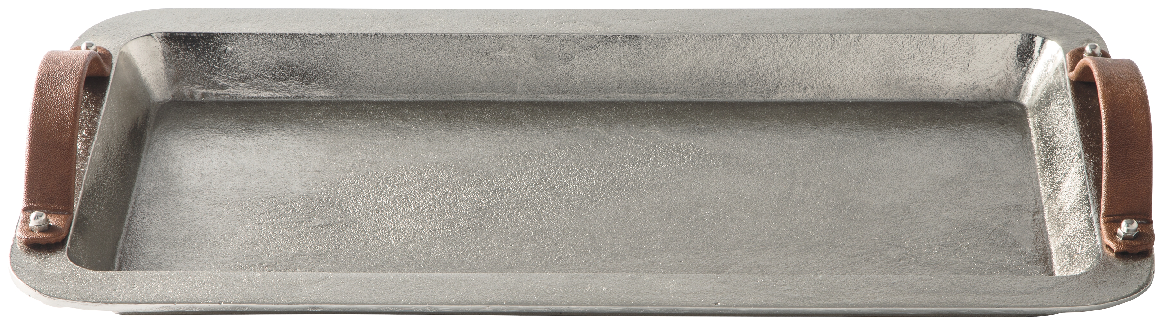 Keep your remotes and accessories close at hand on the attractive Joelle tray. The sturdy, leather handles make mobility a snap and the silver-tone cast aluminum adds a touch of rustic appeal.