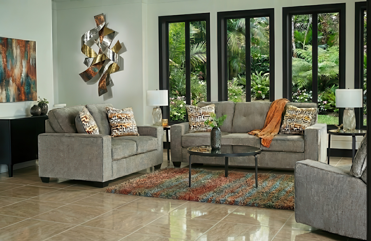 You’ve built a life, a career, and a family. You deserve a living room that reflects your success without requiring a 'Do Not Touch' sign. Introducing the Larimer Collection — a living room set that balances contemporary design with South Texas practicality. Anchored by cool, easy-to-clean tile flooring, this space is designed to beat the heat while looking effortlessly chic. The high-performance gray chenille fabric stands up to kids, pets, and spill-prone guests, while the dramatic metal wall sculpture signals that this is a grown-up space.