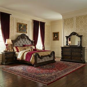 From its ornamental appliques to its large scale, this queen upholstered bed makes a bold statement. Showcasing sculptural ornate details and button tufting, this opulent bed wows with stunning style. The look is timeless. The feel? Right at home.