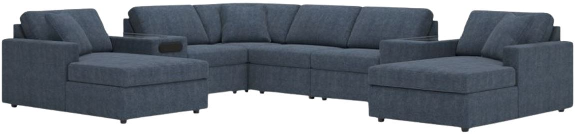 Includes 8 Modular Pieces: Left-arm facing corner chaise, 3 armless chairs, audio console with storage, console with storage, wedge and right-arm facing corner chaise
