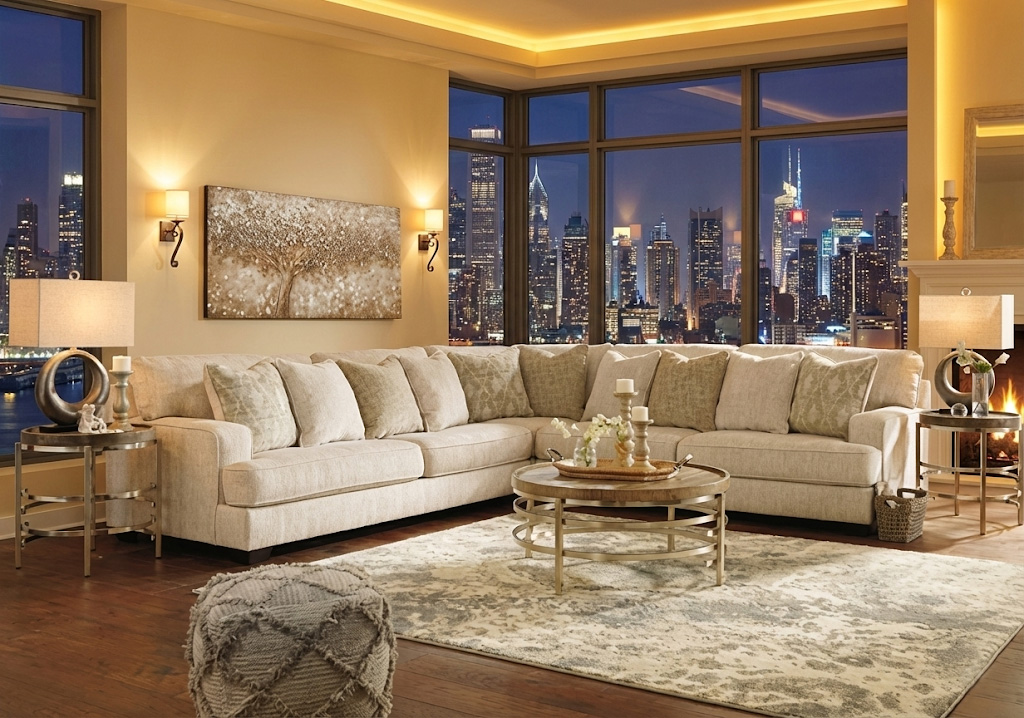 Transform your living room into a sophisticated retreat with our stunning new oversized sectional, available now at LFD Home Furnishings. Whether you are looking to upgrade your family room in Laredo, Brownsville, or right here in the Rio Grande Valley, this piece delivers the perfect blend of metropolitan style and Texas-sized comfort. Designed for relaxation, this sectional features ultra-soft, beige textured upholstery that brightens up any space. The deep, plush seating is paired with an array of designer accent pillows in soft greens and geometric patterns, giving you that high-end interior designer look without the high-end price tag.