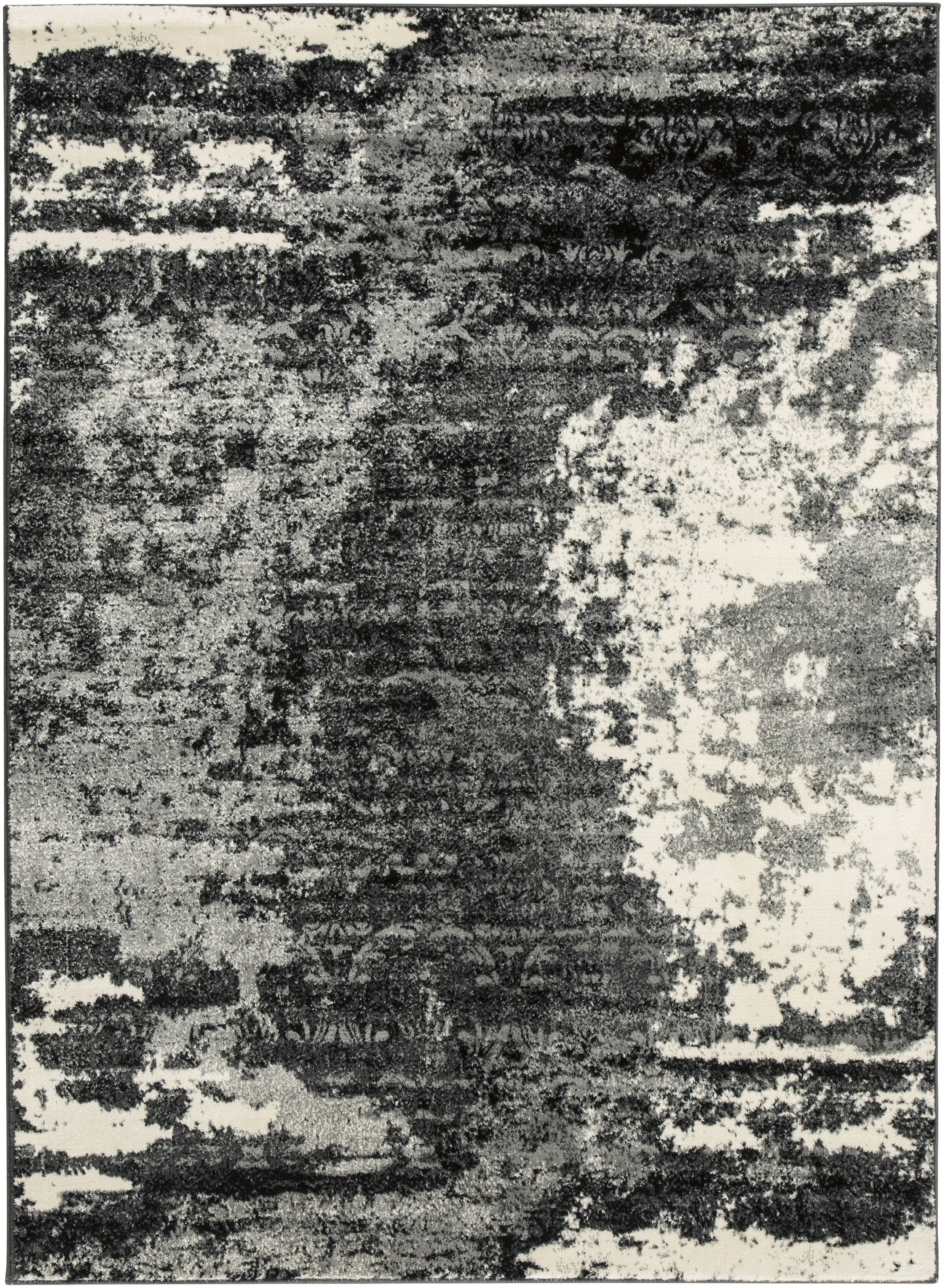 The Roskos rug rounds out the style of your room with its abstract pattern of black, white, and gray on a soft, polypropylene pile.
