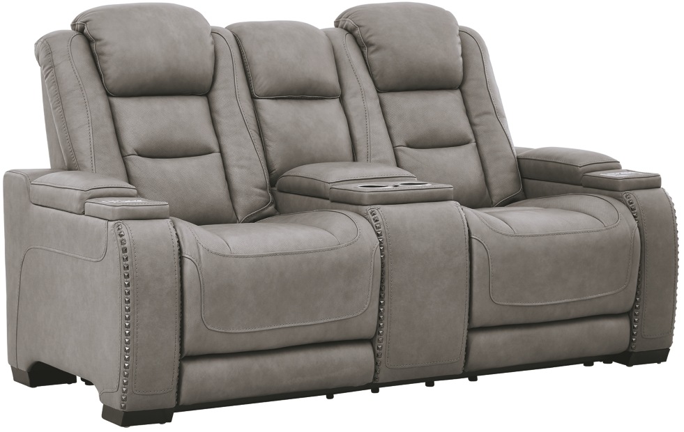Reserved for him and made for her, this power reclining loveseat in gray delivers all the comfort and style you could ask for. Inspired by sports car interiors, the expertly matched leather and faux leather upholstery has a “perforated automotive” treatment for that much more appeal.Read More
