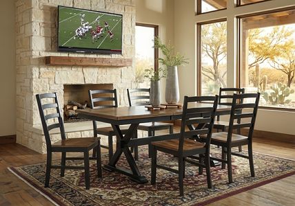 Raise the bar on modern farmhouse style with this dining package. Its casual good looks are accentuated with a handsome two-tone finish. The chair’s clean lines and the table’s sturdy silhouette add a fresh element, whether your style is vintage, country or eclectic. This richly crafted set serves up charm wherever folks decide to take a seat.Read More