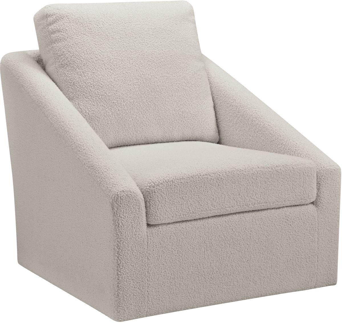 Accent Chair. Slope Arm. Upholstered in Cream Sherpa Fabric. Attached Pillow Back and Seat Cushion. Metal Swivel Base.Read More