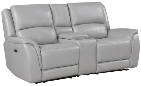 The Alexandria Leather Reclining Console Loveseat offers modern luxury and timeless comfort. Upholstered in neutral Stone leather, it features 143° power recline, plush 7-inch cushions, a handy storage console, and built-in USB ports—perfect for stylish, connected relaxation.Read More