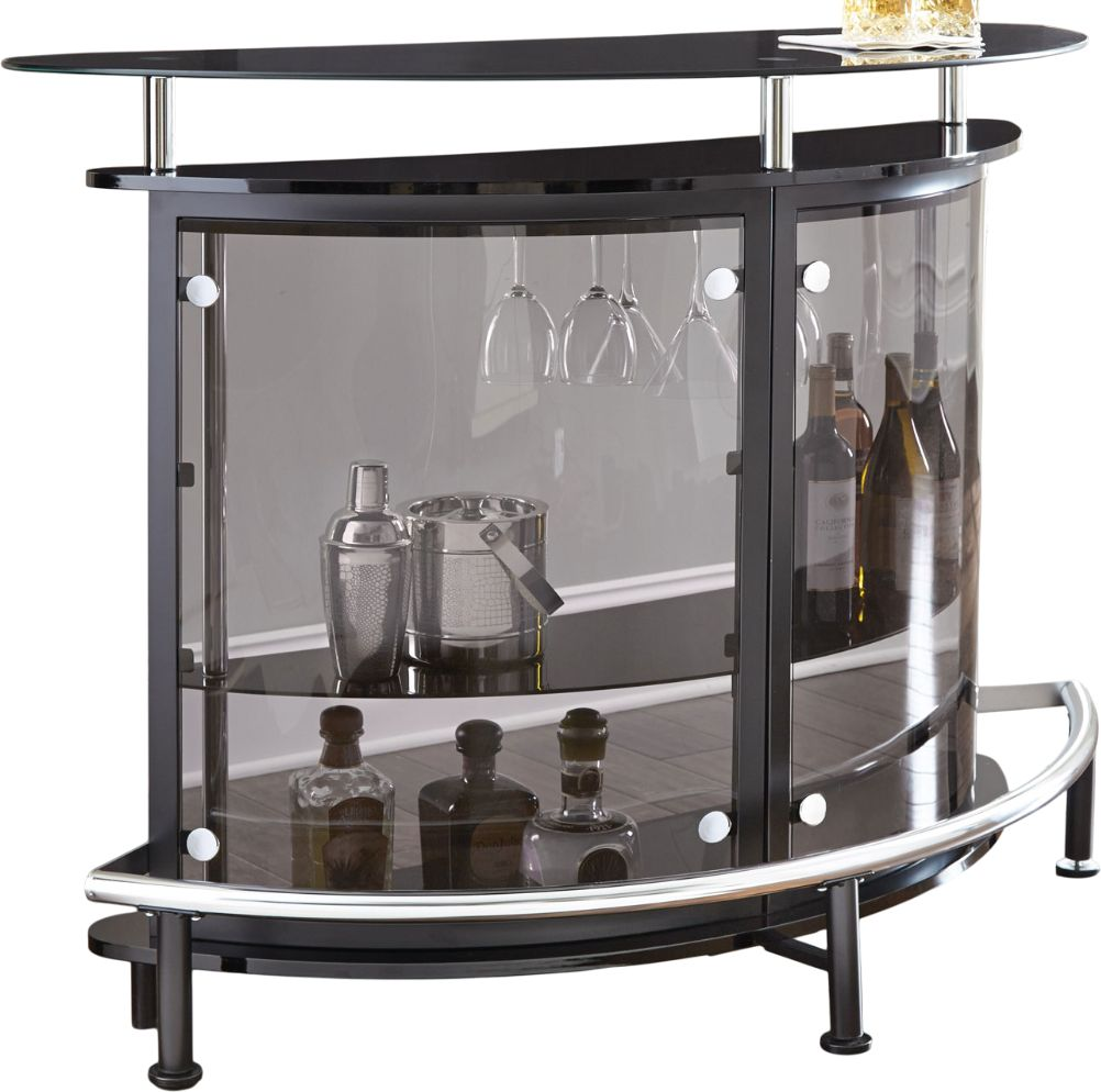 The compact and functional design makes the Ariana bar a very stunning and practical addition to your home. The smoked tempered glass shelves add contemporary elegance, white the under-the-shelf stemware holder is both convenient and captivating. The smooth surfaces and stylish footrest lend a very modern style to this bar.Read More
