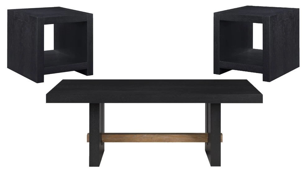 The Aubrey 3-Piece Table Set combines modern farmhouse style with multifunctionality for your living room. The centerpiece is a black coffee table that balances rustic charm with timeless elegance. Crafted from rich acacia veneers and hardwood solids, it features a deep black finish, driftwood-stained accents, and exposed tenons for added flair.Read More