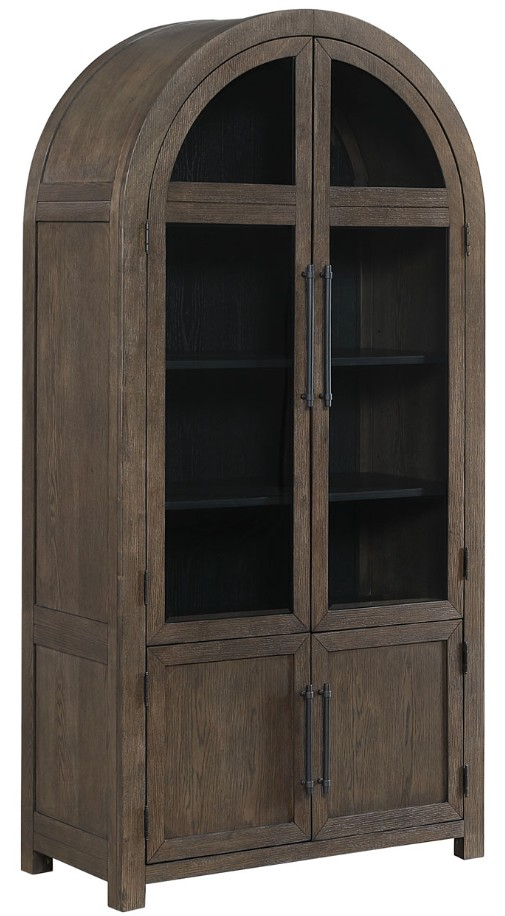 The Burlington Curio, in cocoa with a black interior, adds elegance to any room. Its domed top and upper dual glass doors create a stunning display for china, collectibles, or décor, while lower dual doors provide hidden storage. The rich cocoa finish serves as a striking modern accent, whether paired with the Burlington collection or used alone.Read More