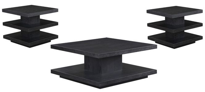 Set includes the castered black Canyon Cocktail Table and 2 End Tables. Each item also sold separately.