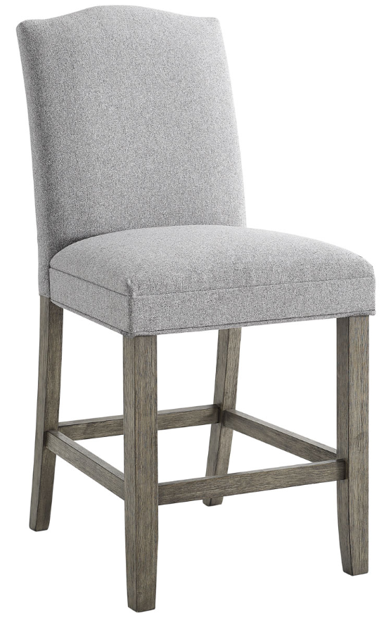 This counter stool showcases a rustic driftwood finish paired with soft gray upholstery, creating a refined yet casual look. Memory foam padding adds comfort, while black nailhead trim provides a stylish accent. Built from hardwood solids with a supportive footrest, it’s designed for durability and everyday use.Read More
