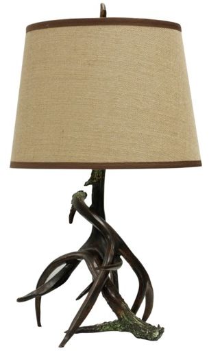 StyleCraft Table Lamp with antler base and burlap drum shadeRead More